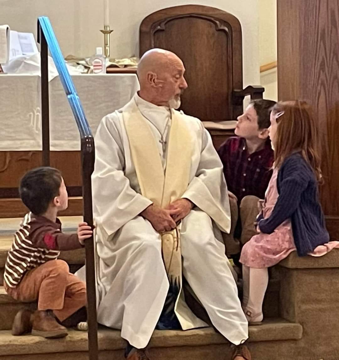 A special time is set aside during the service for story time with Pastor Edwin. Stories that are reflective of the day's message, focus on three friends: Jeffery, Jamal and Janet. At the end of each story time, the children have an opportunity to choose a small stuffed animal that are "friends who need a good home that we take home to set a good example for them by not fussing or fighting, by being good and saying our prayers before bedtime and mealtimes, reading them Bible stories everyday, and by bringing them back next week to share with someone else!" Each child also receives a weekly Bible based storybook to take home and read during the week to their new friends!